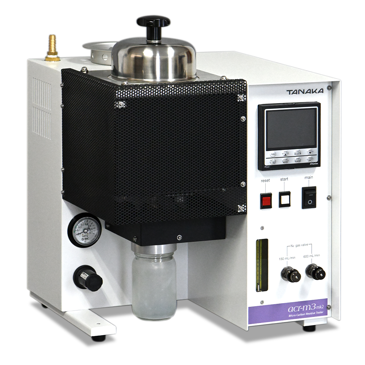 Key features of the ACR-M3mk2 include automated nitrogen gas flow control and a digital display, ensuring consistent and reliable test outcomes. The unit adheres to both ISO 10370 and ASTM D4530 standards and can operate at temperatures up to 500°C. Its compact design, weighing just 21 kg, makes it easy to fit into most lab setups.