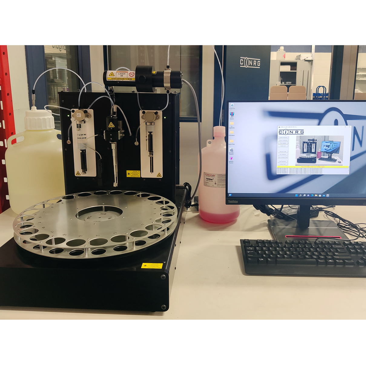 Introducing the CINRG CS-APC-22M compact particle counting system, the first fully automated auto-dilution particle counter for ASTM D7647. This cutting-edge technology combines equipment from leading manufacturers with innovative software developed by Wearcheck. Its complete automation allows for quick sample preparation and accurate dilution control, accommodating a wide range of viscosities. The system is highly customizable, with batch file creation and adjustable processing parameters. Additionally, automatic solvent verification ensures accurate results by assessing solvent cleanliness. It offers complete automation, allowing quick sample preparation in 32ml cups placed in a 24-position tray. Sample volume accuracy is ensured within ±2%, with the option for higher accuracy by pipetting or weighing samples. Final sample volume is standardized at 30 mL. With these features, the CINRG CS-APC-22M provides a flexible and efficient solution for particle counting in oil analysis at laboratories.