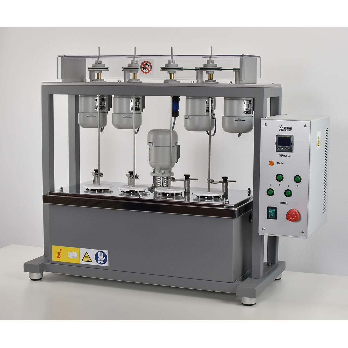 - Independent electric stirrer motors for each position.
