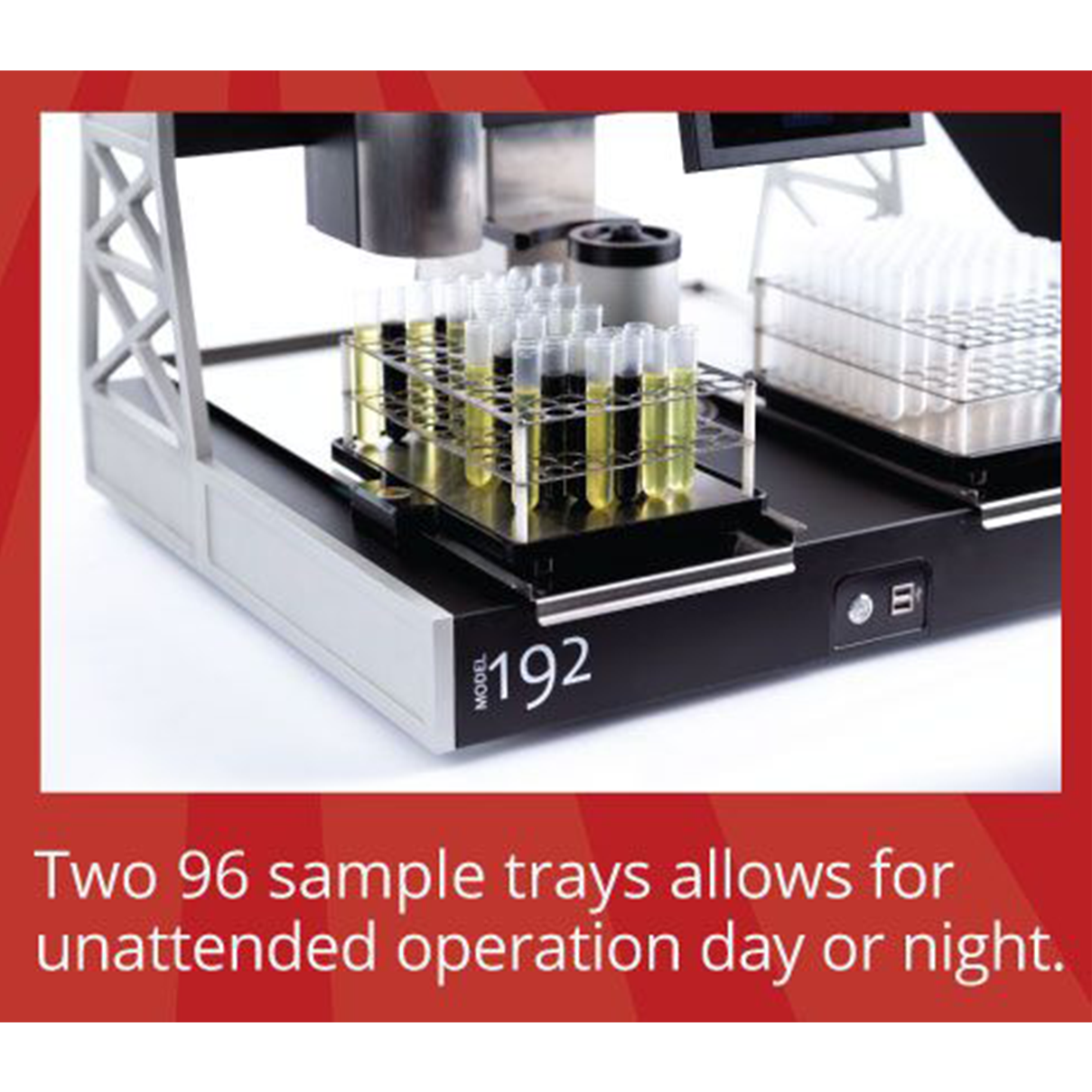 • Two 96-position removable sample trays allows for high output (192 samples) and unattended operation